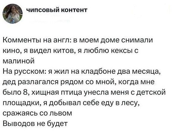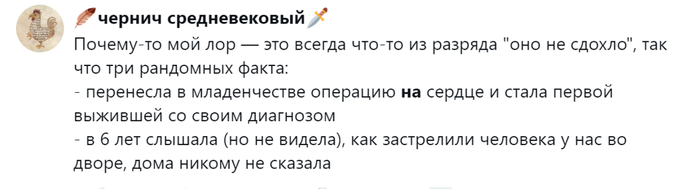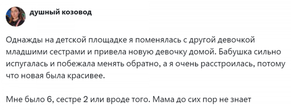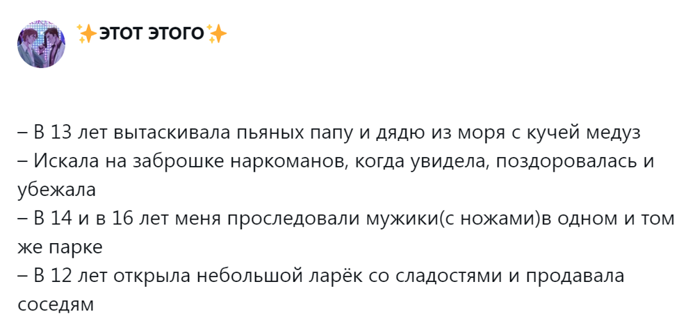 Он начался с одного поста с забавной картинкой от пользователя Mood Dragon и предложением поделиться забавными запомнившимися моментами из жизни. А разросся до целой вселенной и продолжает расти. Истории, которые пользователи держали в себе, а потом решили вынести на публику, удивляют, трогают и реально пугают. Ведь реальность такова, что даже самые изощрённые ужастики меркнут перед обычной жизнью, а трогательные мелодрамы кажутся лишь серым невзрачным отпечатком настоящей драмы.