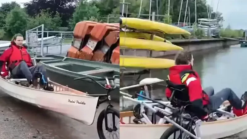 Обычное каноэ вряд ли вызовет бурю эмоций, если только вы не сплавляетесь на нем рядом с водопадом. Но каноэ из этого видео, созданное шотландским энтузиастом - это совсем другое дело. Он взял каноэ, велосипед и немного инженерного упрямства, и в итоге у него получился гибрид, который и по суше едет, и по воде плывет.Конструкция выглядит так, будто ее собрали в сарае по мотивам детских фантазий и видеоигр конца 90-х. Однако все прекрасно работает, каноэ мчится вперед, вызывая у всех, кто его видит, смесь восхищения и недоверия.