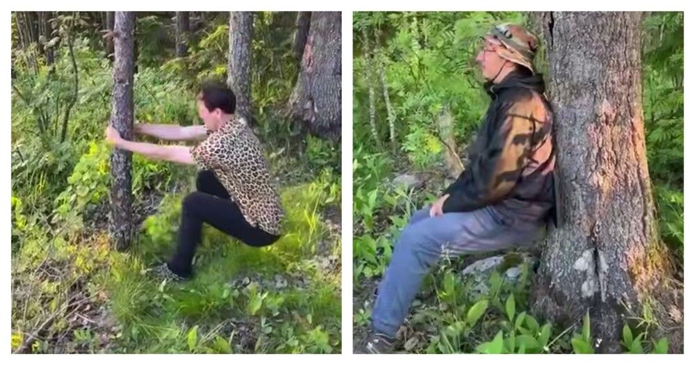Что делать, если приспичило по большой нужде в лесу? Действовать! Автор видео продемонстрировал позы, которые упросят процесс дефекации в лесу.