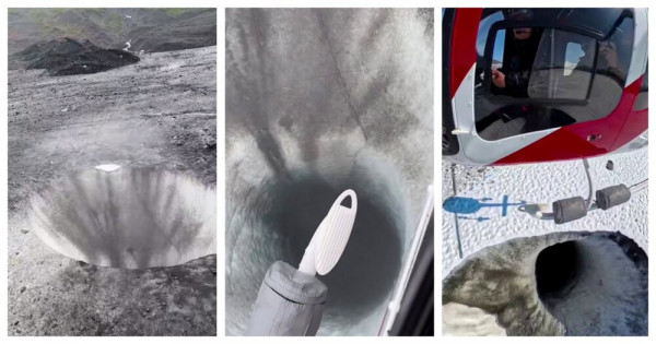 Пилот вертолета с Аляски запечатлела крупные дыры, образовавшиеся в тающих ледниках.