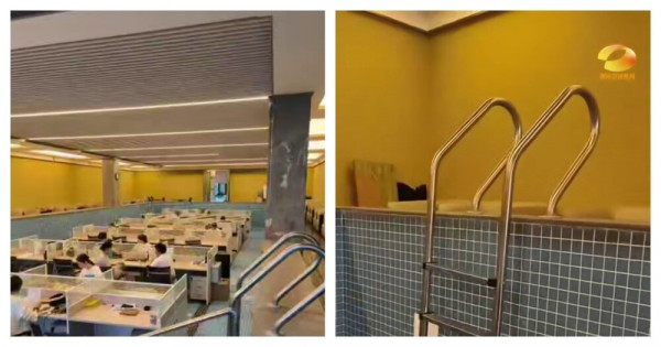 В Китае компания решила сэкономить на ремонте и открыла офис внутри бассейна.