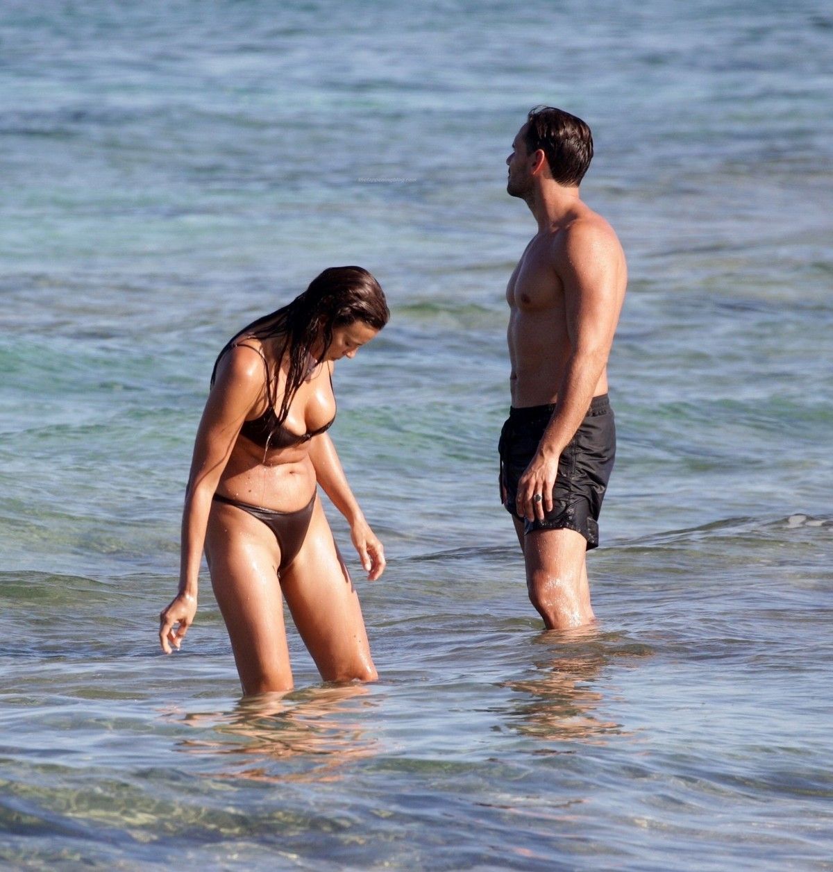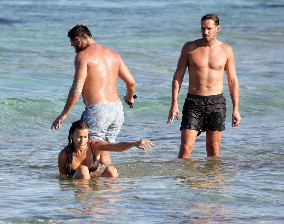 35-летняя российская супермодель и актриса Ирина Шейк (Irina Shayk) в бикини во время отдыха с друзьями на пляже Ибицы.