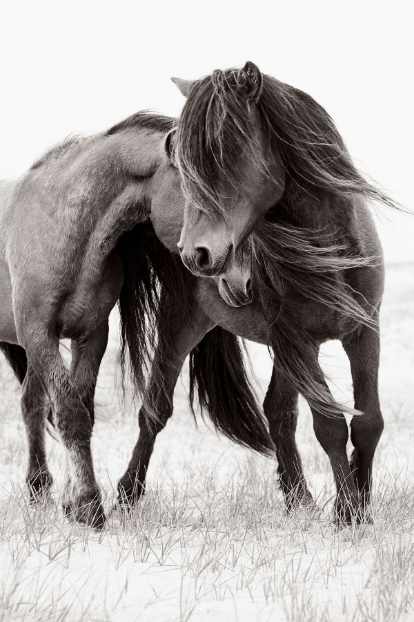 Фотограф из Южной Каролины Дрю Доггетт (Drew Doggett) отважился побывать на таинственных берегах острова Сейбл, который лежит у берегов Новой Шотландии и прозван "кладбищем Атлантики" из-за того, что он окутан туманом около 125 дней в году.Песчаная коса в форме улыбки, длиной 26 миль, является домом для около 400 диких лошадей, которые были доставлены на остров в начале 18 века, когда была предпринята попытка поселения, и Доггетт описывает ее как самую уникальную сцену, с которой он когда-либо сталкивался.Черно-белые фотографии Доггета, которые образуют новую книгу под названием "Wild: The Legendary Horses of Sable Island" и включающую предисловие доктора Джейн Гудолл, показывают, как выглядит жизнь на удивительном острове с его лошадьми.