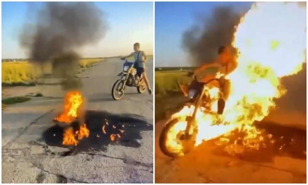 "Призрачный гонщик" в исполнении школьника на питбайке