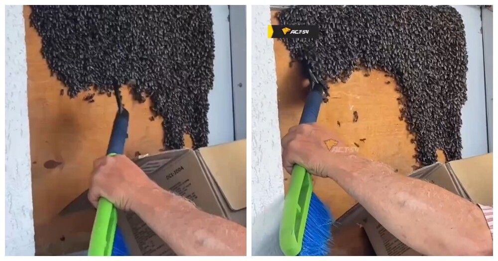 В городе нашлись смельчаки, которые собрали жужжащих жильцов и пересилили их подальше от людей.