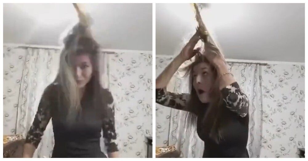 Радостно двигаясь в танце перед объективом, молодая особа зацепилась волосами за липкую ловушку для насекомых. В один миг беззаботное веселье сменилось неожиданным столкновением с бытовой проблемой.