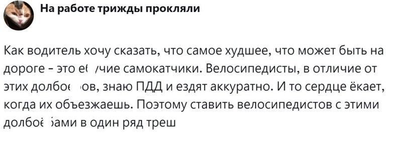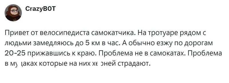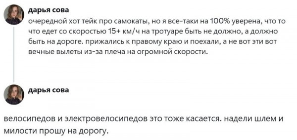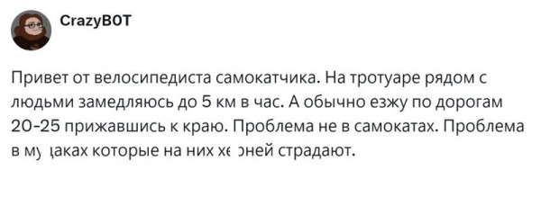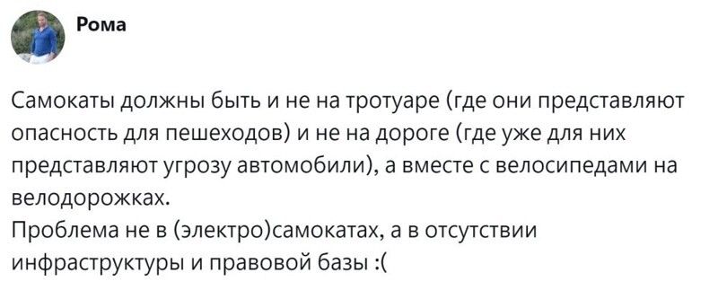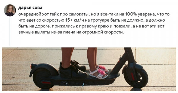 У кого-то в лучшую сторону, поскольку это доступное и экологичное средство передвижения позволяет экономить время и деньги. А у других наоборот, ведь из-за самокатов и их не совсем адекватных водителей люди получили травмы, а кое-кто даже расстался с жизнью. В связи с чем постоянно идут споры и разворачиваются самые настоящие баталии. Что же делать с самокатами - не лишать людей удобства и оставить всё как есть, ввести ограничения по скорости, возрасту и местам передвижения или вообще их запретить? Пользователи поведали самокатные истории и поделились своей позицией по этому сложному и животрепещущему вопросу.