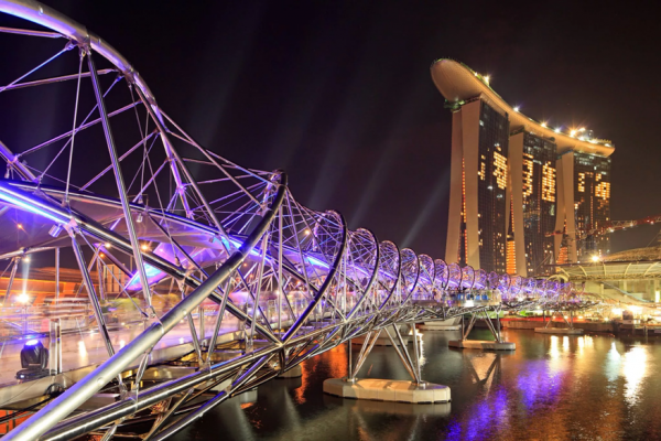 В футуристическом районе Марина-Бэй изящной стальной лентой извивается пешеходный мост "Хеликс" - одно из самых необычных сооружений города-государства. Открытый в 2010 году, этот 280-метровый шедевр в форме двойной спирали, созданный совместно австралийскими и сингапурскими архитекторами, воплощает саму суть жизни - структуру человеческой ДНК.Каждая деталь моста продумана до мелочей: разноцветные буквы C, A, T и G, подсвечивающиеся в темноте, символизируют азотистые основания (цитозин, аденин, тимин и гуанин), создавая ощущение, будто вы идёте по гигантской молекуле жизни. Четыре смотровые площадки, встроенные в спираль, предлагают панорамные виды на сверкающий небоскрёбами Сингапур, особенно впечатляющие ночью, когда стальные конструкции оживают в танце световых эффектов.