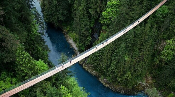 Над бурными водами реки Капилано в Канаде уже более 130 лет парит знаменитый подвесной мост - живое свидетельство инженерной смекалки. Построенный в 1889 году шотландским инженером как утилитарная переправа для рабочих лесопилки, он представлял тогда рискованное зрелище: узкие доски, опирающиеся на ненадёжные пеньковые канаты.Современная реконструкция превратила Капилано в безопасную, но не менее захватывающую достопримечательность. На высоте 70 метров, растянувшись на 137 метров между скалистыми берегами, мост демонстрирует удивительную прочность. Теоретически он способен выдержать вес почти сотни слонов. Однако даже стальные тросы не спасают от характерного для подвесных конструкций раскачивания, особенно заметного в ветреную погоду или при большом скоплении посетителей.Но истинная ценность Капилано в непревзойденных видах. Независимо от сезона, с моста открываются потрясающие панорамы. Густые хвойные леса, глубокий каньон и бурлящая внизу река создают ощущение единения с дикой природой.