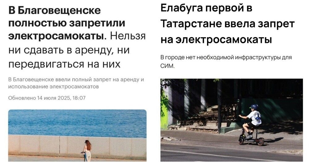 К слову, в Благовещенске и Елабуге от арендных самокатов уже отказались - опыт, как говорится, передаётся по регионам.Ну а в Благовещенске полицейские уже во всю реализуют введение запрета на электросамокаты. Выглядит эпично.