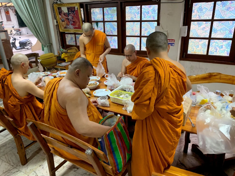 Их обед зависит буквально от того, что положили в котелок. И обычно это калорийная пища, часто домашнего приготовления. Все из добрых побуждений, верующие-буддисты хотят предложить что-то ценное и вкусное. Из-за лишнего веса монахи страдают от диабета, высокого кровяного давления, испытывают проблемы со зрением, страдают от остеоартрита коленных суставов. Но обычно монахи даже не понимают, что именно с ними - нет образования. Когда проводился медосмотр монахов, врачи оказались в шоке. Потому что у многих монахов нет пальцев на ногах из-за ампутации из-за диабета, но они даже не знают, что это такое!