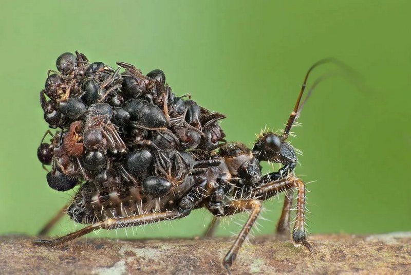 1. Грим из труповОбычные жуки-убийцы достаточно жуткие. Они питаются своей добычей, нанося ей удар своим хоботком, вводя парализующий агент, затем белки, растворяющие ее изнутри (пока жертва еще жива и парализована), и, наконец, высасывая липкие внутренности. Но один вид Acanthaspispetax еще хуже.Жуткий ползун использует тела своих жертв в качестве маскировки. Убив свою жертву, обычно муравьев, он натирает их липкой субстанцией и наклеивает себе на спину. И он продолжает делать это, тело за телом, пока на его спине не появится гигантский шар из мертвых муравьев. Стопка муравьиных тел потенциально маскирует запах жука-убийцы запахом муравья, а также помогает насекомому выглядеть больше, чем оно есть на самом деле - по-видимому, защищая его от обескураженных хищников.muz4in.net