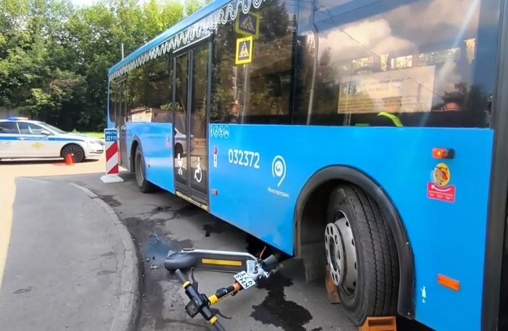 На этих кадрах последние секунды жизни самокатчика, который днем 18 июля угодил под автобус на улице Малыгина в Москве.