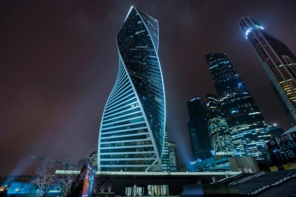 На Пресненской набережной находится комплекс небоскрёбов "Москва-Сити", включающий 255-метровую башню "Эволюция". Её спиралевидный дизайн, напоминающий двойную цепь ДНК, символизирует единство поколений.