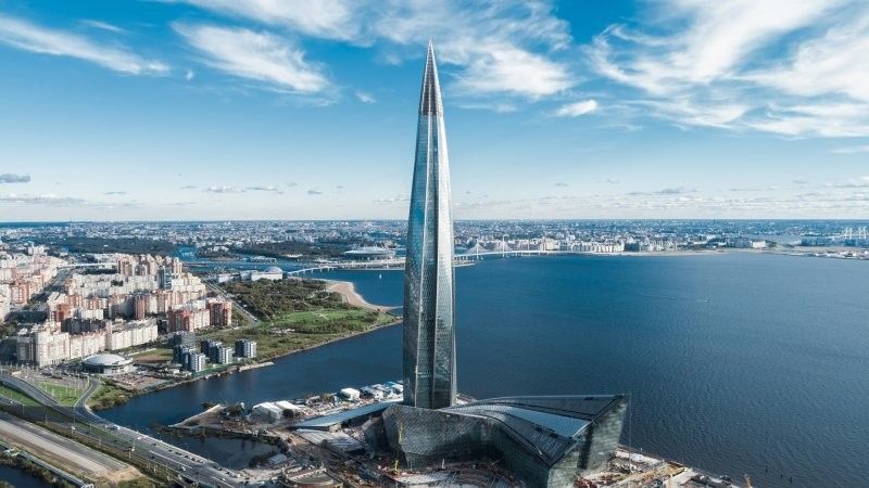 462-метровый "факел" - самый высокий небоскрёб Европы. Внутри расположены амфитеатр на 2000 мест, смотровая площадка на 357 метров и аквапарк.