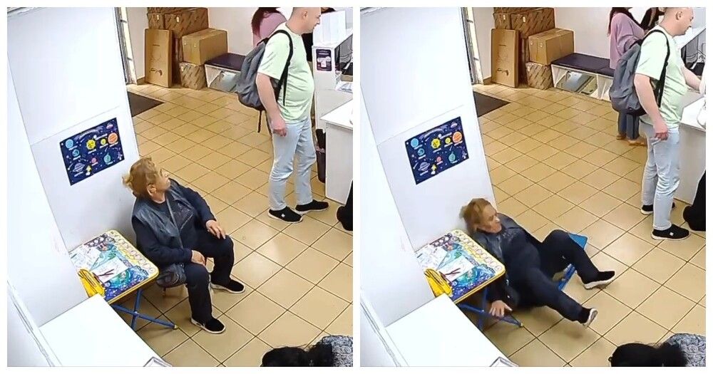 Женщина попыталась отдохнуть, присев на детский стульчик в зоне выдачи заказов, но предмет мебели не выдержал её веса и сломался.