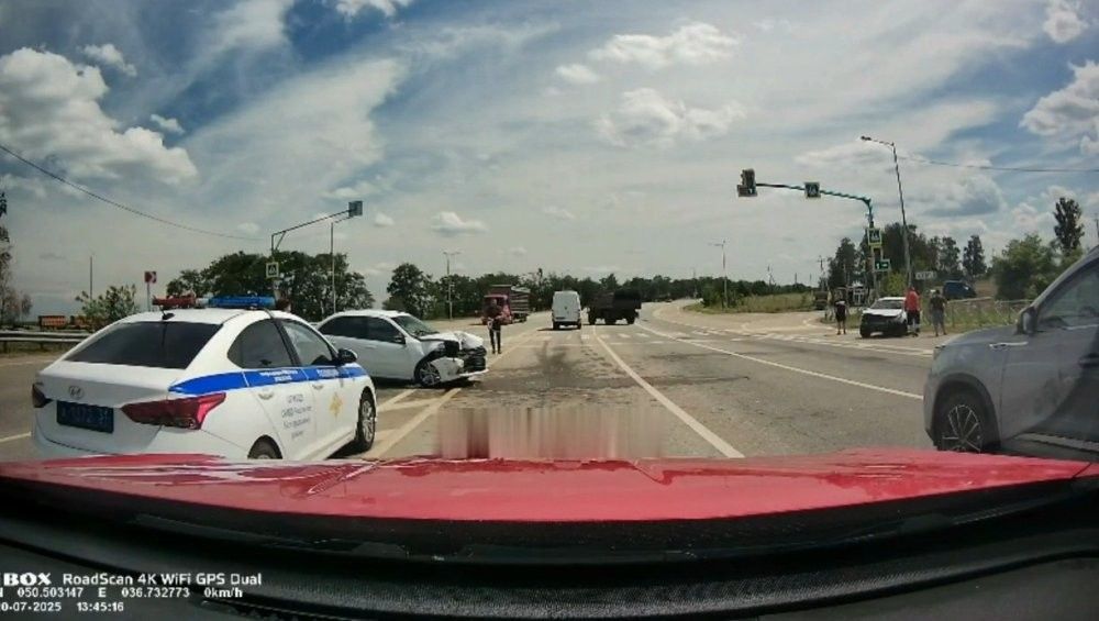 Пока происходило оформление ДТП случился прилёт плохо управляемого снаряда в лице чёрного "БМВ". Белгородская область.