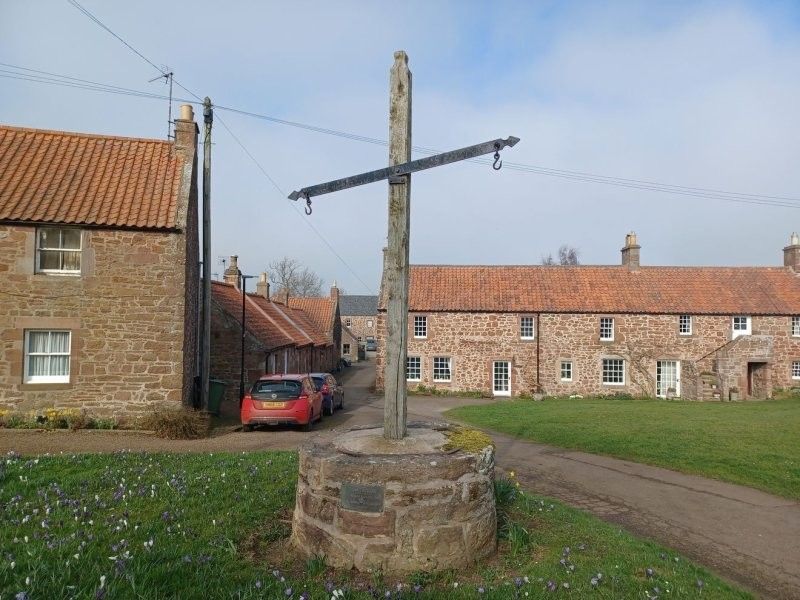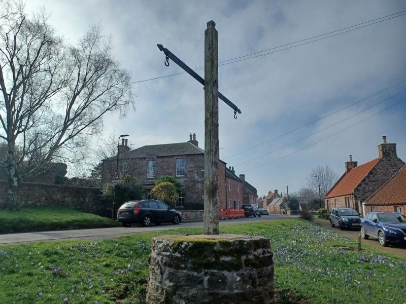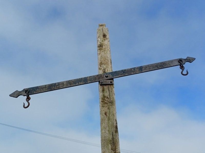 Горизонтальная перекладина этого креста - не что иное, как коромысло рычажных весов, использовавшихся для взвешивания товаров. До сих пор на его концах видны крюки, на которые подвешивали гири и грузы. Такие общественные весы назывались тронами (от французского troneau - "весы"). Когда-то они были обычным явлением в сельской местности Шотландии.