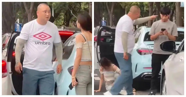 Лысый мужчина проявил агрессию по отношению к женщине, когда они оба стояли в автомобильной пробке. Однако, вместо того чтобы заступиться за свою девушку и оградить её от нападения, молодой человек предпочел вызвать правоохранительные органы.