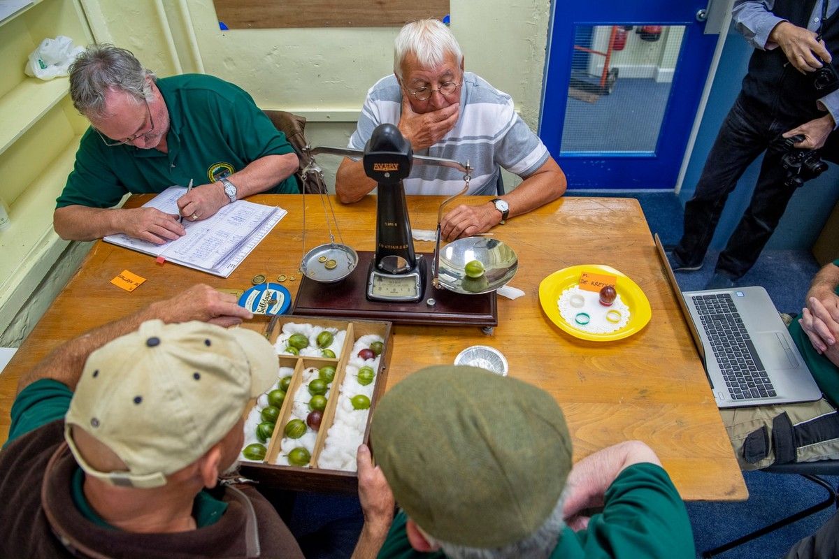 Вес самой тяжелой ягоды указывается в драхмах и гранах (аптекарские меры веса). В этом году победил 85-летний пенсионер Брайан Неллист (Bryan Nellist), го ягода весила 26 drams 18 grain (47.24 гр).Предыдущий рекорд составил 32 драхмы, а это больше 50 г - такая ягода крыжовника размером с мячик для гольфа.