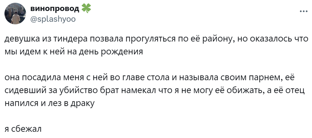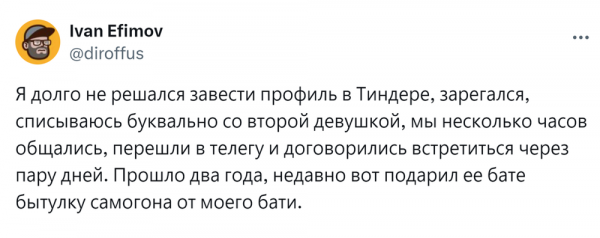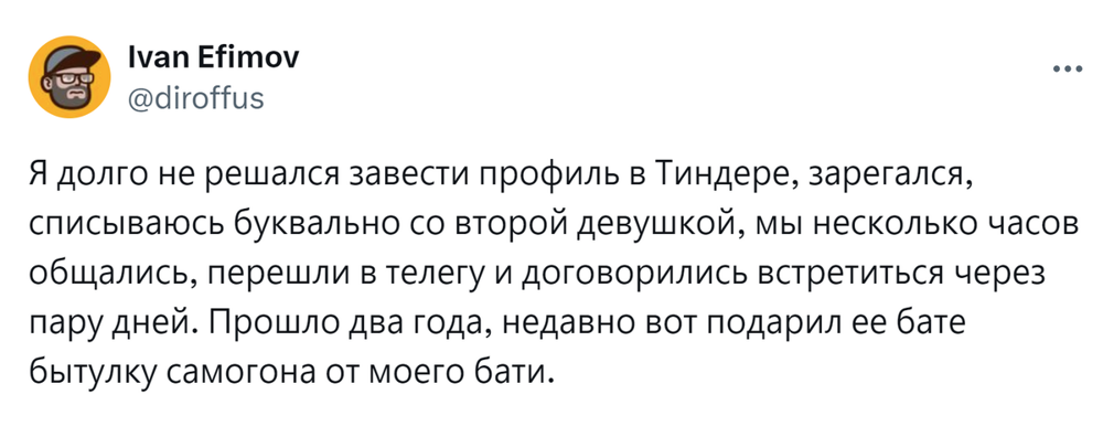 11. Такие две разные истории про тиндер. Там батя самогон дарит, а тут лезет драться