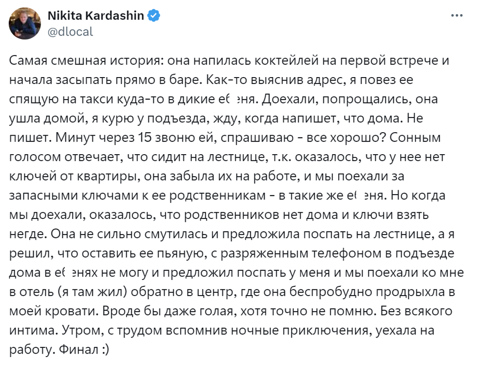 Оригинал поста с призывом рассказать невыдуманную историю, о которой невозможно молчать, собрал миллионы просмотров и сотни тысяч комментариев пользователей из разных стран.Теперь в Х новая традиция - под этими плохо нарисованными человечками люди рассказывают истории на самые разные темы. Вот подборка историй про свидания и отношения.