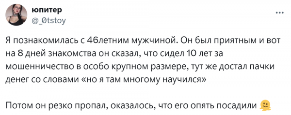 7. Плохо он научился, если незнакомому человеку сразу стал хвастаться нетрудовыми доходами