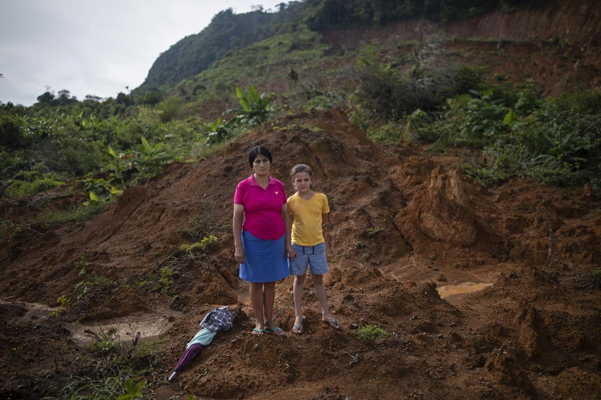 Городок на западе Гондураса, где проживало около 1000 человек, в течение трех недель подвергся двум мощным ураганам, стихийным бедствиям, усугубленным местной вырубкой лесов и изменением климата. Городок Ла Рейна был погребен оползнем.