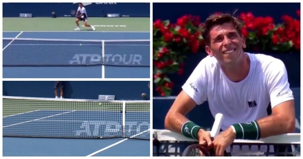 Канадец пробил в сетку, но мяч прошел сквозь ее отверстие. Итальянский теннисист заметил нарушение и запросил видеопросмотр эпизода.После просмотра повтора очко присудили итальянцу.