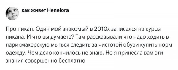 Как вы относитесь к пикап-техникам? Видели ли вы примеры, когда это работало? Или считаете, что любые шаблоны в общении убивают искренность?