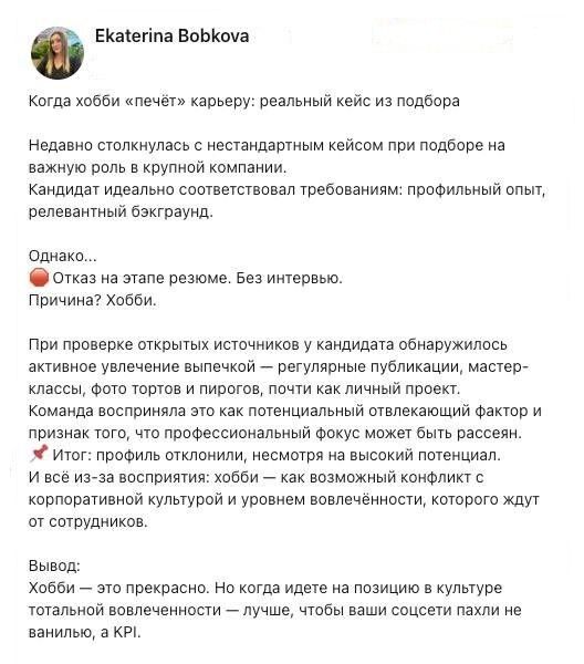 Тесто и тесты: как душевное хобби кандидата напугало эйчара и команду и стало причиной отказа…