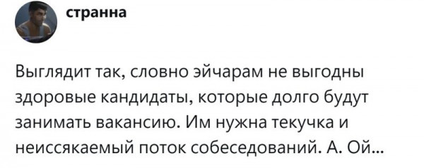 На помощь руководителям пришли представители новой формации - эйчары, которые в стремлении сделать всё как лучше и подобрать идеального кандидата на открытую вакансию порой перегибают палку. Пользователи поудивлялись такой тенденции и в очередной раз пришли к выводу, что лучшее - враг хорошего.