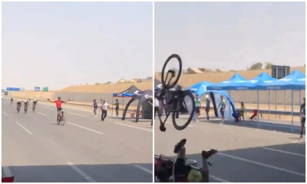 Во время велопробега в Эрбиле (Иракский Курдистан) велосипедисту, который первым приближался к финишной черте, захотелось досрочно начать отмечать победу. Спойлер - он не победил.