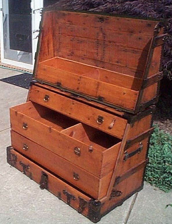 В эпоху, когда трансатлантические путешествия занимали недели, а богатые дамы везли с собой до 30 платьев, появился гениальный гибрид - сундук-гардероб (steamer trunk dresser). Это была не просто багажная вещь, а практически переносная спальня для аристократов с ящиками, полками, вешалками и потайными отделениями. Такие гаджеты активно использовали трансатлантические пассажиры, актрисы и дипломаты.
