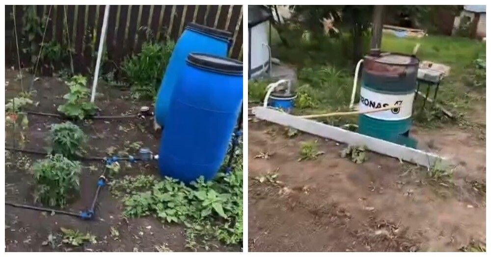 На даче мужчина автоматизировал полив грядок таймером и автоматическим заполнением бочек. Для утрамбовки семян газона он использовал переделанный бойлер в качестве катка. Также он изготовил печь для обогрева бассейна и самодельный песочный фильтр для него.