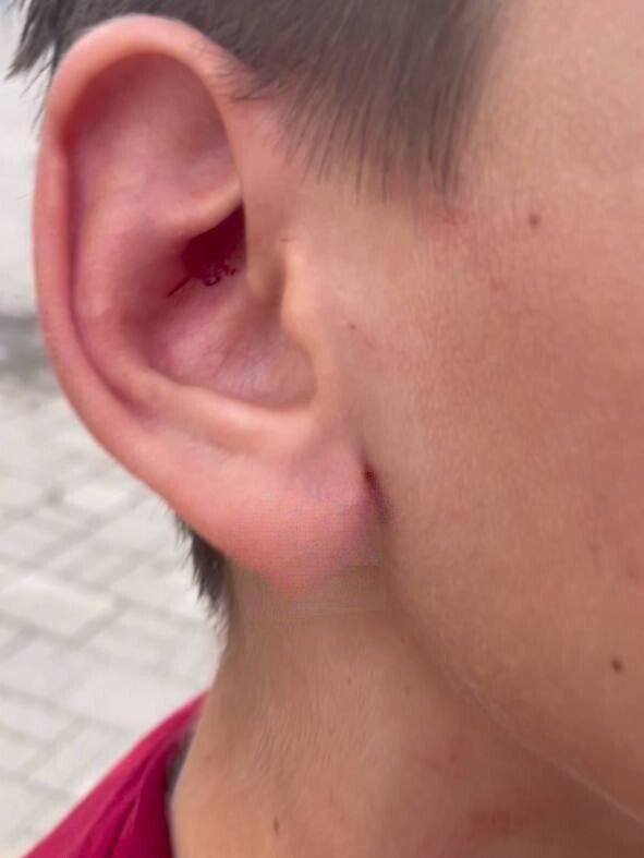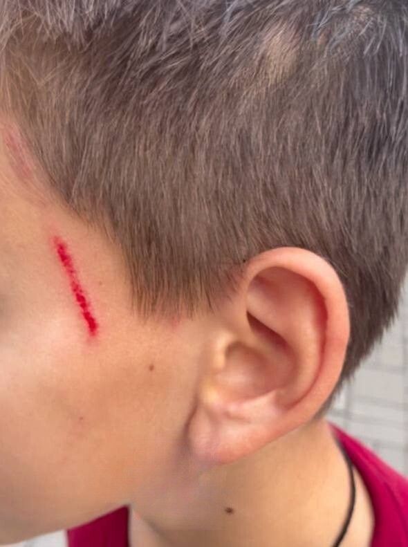 Посетительница, дождавшись, пока юноша начнет есть, вылила ему на голову сладкий напиток, а затем набросилась на него и порвала дорогую футболку, а также поцарапала ему лицо. После этого она ушла вместе с дочкой. У пострадавшего мальчика остались царапины. Вероятно, позже проявятся синяки. На представленном фото видно: свежую длинную и широкую царапину в районе виска; кровь в ухе; ссадины на лбу.