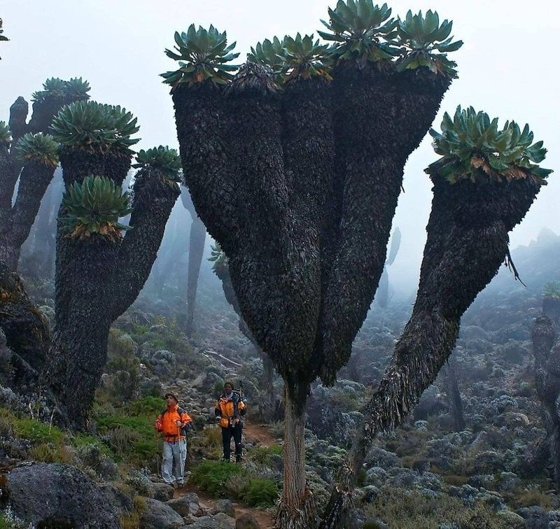 Гигантские крестовники (Dendrosenecio kilimanjari) - живые ископаемые, растущие только на склонах самой высокой африканской горы. Эти необычные растения, напоминающие инопланетные деревья, являются настоящими ботаническими реликтами ледникового периода.