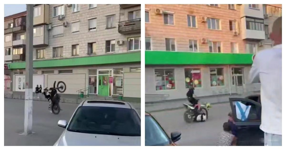 Мотоциклист не смог удержать своего железного коня во время трюка и упал. В этот момент его настиг другой мотоциклист. Итог: перелом ноги.