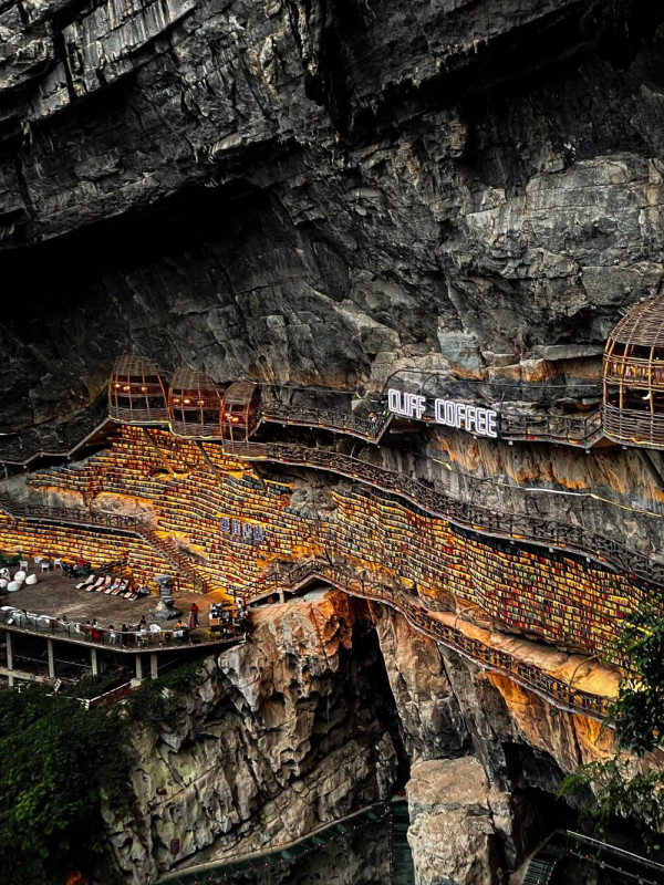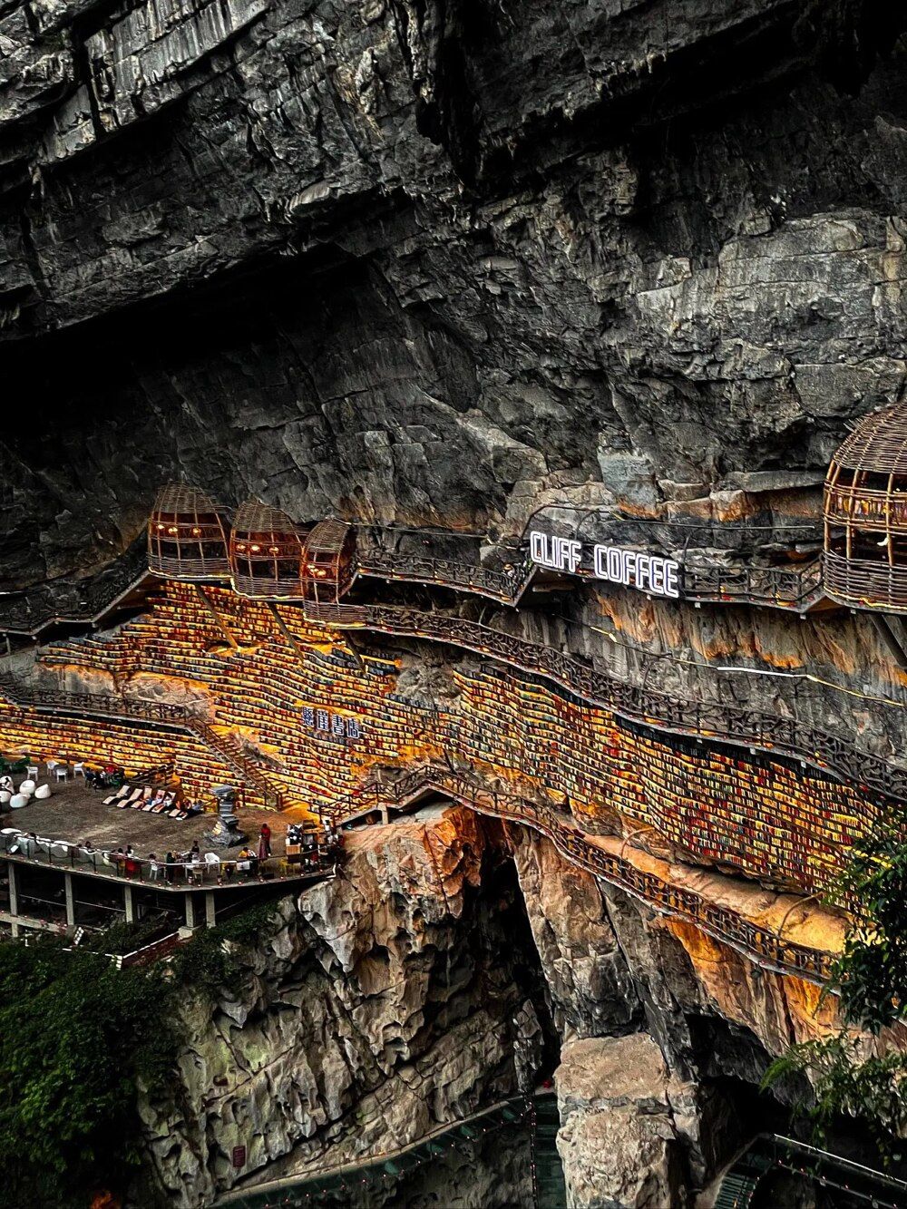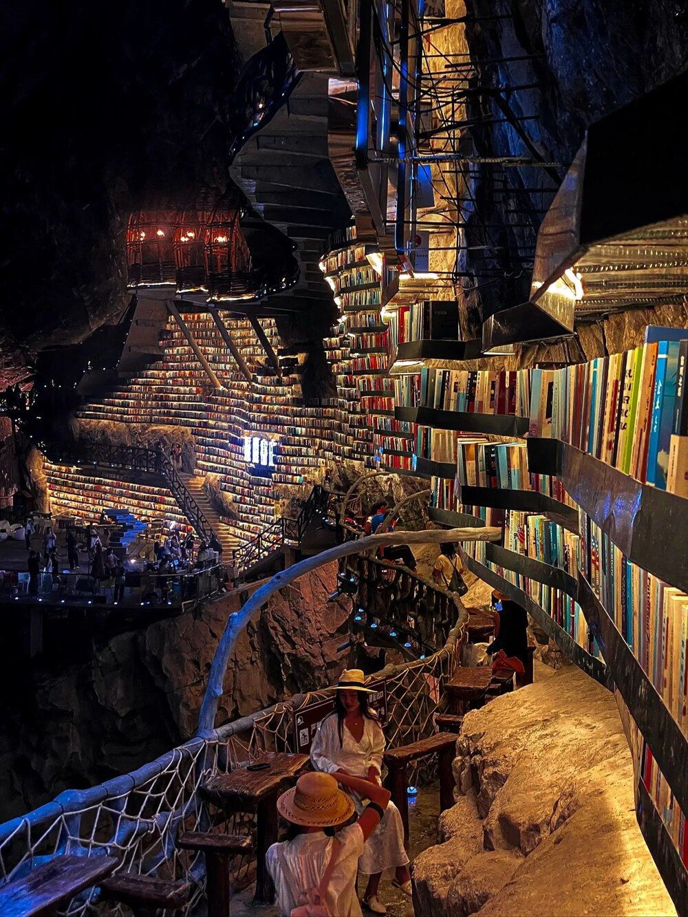 Китайцы нашли самое необычное место для книжного магазина - и открыли его прямо на скале.Полки прибили к одной из гор в Тянькэне, плюс провели атмосферную подсветку, а также сделали лаунжи и кофейню, чтобы можно было сразу почитать и отдохнуть, наслаждаясь видами.