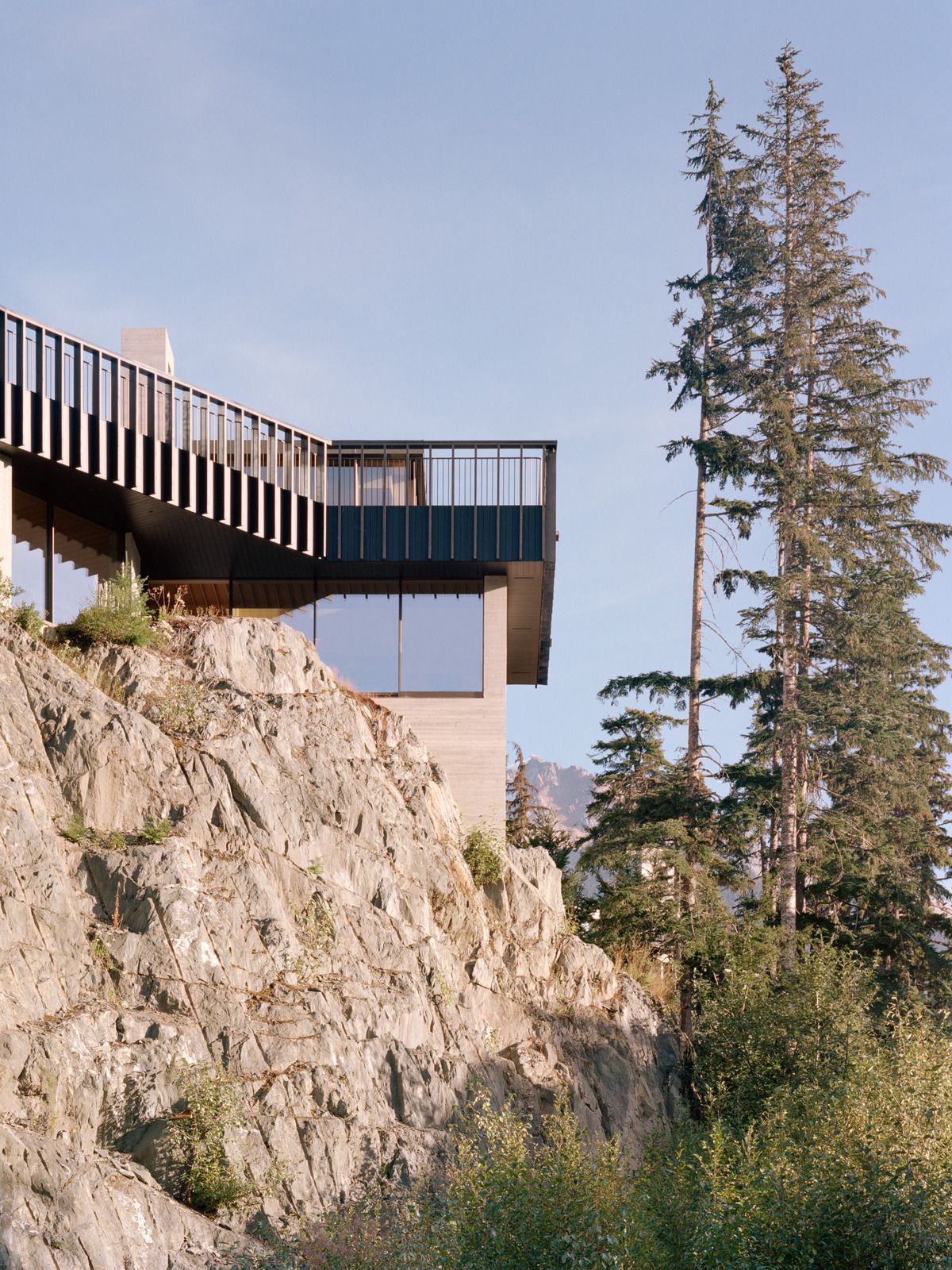 Этот проект стал победителем конкурса на строительство исключительной частной резиденции на канадском горном курорте Уистлер. Этот образцовый семейный дом новой постройки расположен на характерном скалистом выступе над озером Альта, с которого открывается прекрасный вид на окружающий горный хребет. Обдумывая, как подойти к этой сложной топографии, авторы вспомнили отрывок из автобиографии американского архитектора Фрэнка Ллойда Райта 1932 года: "Ни один дом никогда не должен находиться на холме или на чем-либо ещё. Он должен быть холмом. Принадлежать к нему. Холм и дом должны жить вместе и каждый будет счастливее для другого". Это стало бы основополагающим принципом дизайна.Дизайн был разработан на основе тщательного анализа участка, включающего глубокое понимание его естественной красоты, которое с самого начала было исследовано на месте в различных погодных условиях и в разное время суток. Проект включает в себя основную резиденцию, гостевой дом и открытый бассейн в пределах ряда ландшафтных уровней, вырубленных и построенных из скалы. Горт Скотт также спроектировал элитные интерьеры, включая сделанную на заказ фурнитуру.