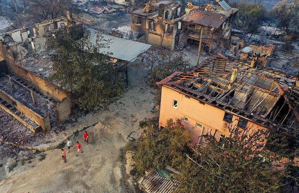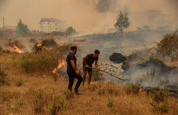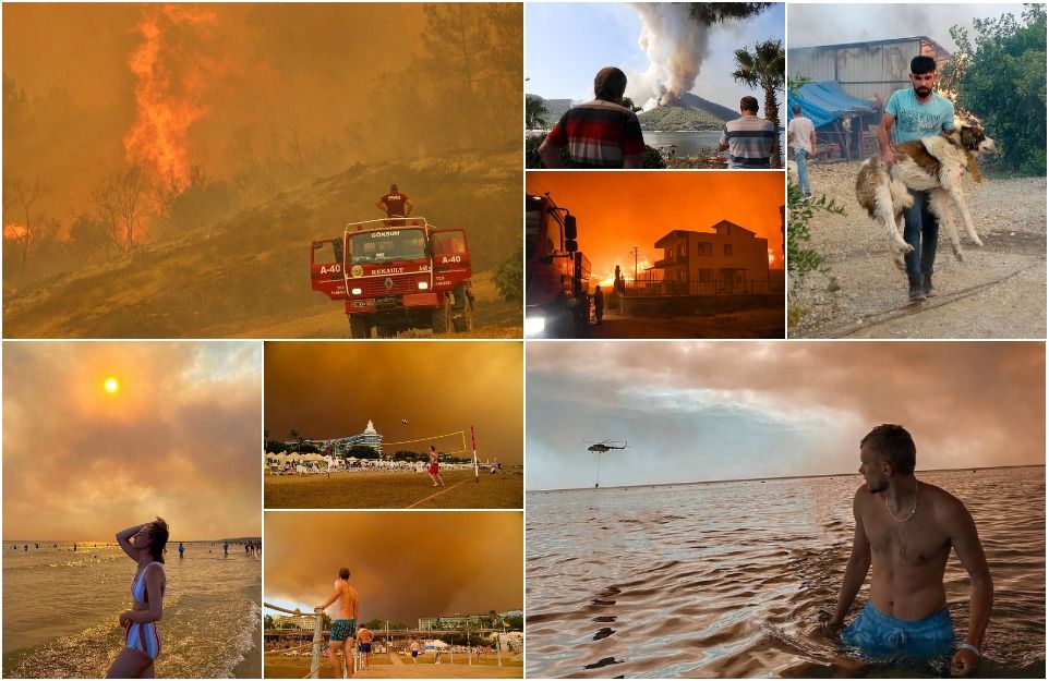4 человека погибли и более 180 получили ранения, когда тысячи пожарных боролись с огромными пожарами, распространяющимися по средиземноморским курортным районам южного побережья Турции.
