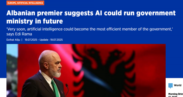 Пока весь мир обсуждает, как искусственный интеллект уволит офисных клерков и дизайнеров, Албания решила поднять ставки. Там премьер-министр Эди Рама всерьёз предложил: а что если вместо людей в кресла министров посадить нейросеть? И тогда страна станет первой в мире с правительством, где на заседаниях не нужен ни кофе, ни конверт в карман пиджака.
