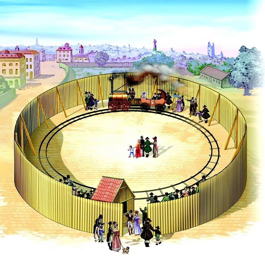 В 1808 году Тревитик приехал в Лондон, чтобы популяризировать железные дороги. Он построил демонстрационную кольцевую трассу диаметром 30 метров, где паровоз тянул вагоны, как на ярмарочной карусели. Несмотря на рекламные цели, изобретатель окружил трек высоким забором, скрывавшим его от посторонних глаз. Соответственно, посмотреть могли только те, кто купил билет. Тревитик назвал это "Паровым цирком".