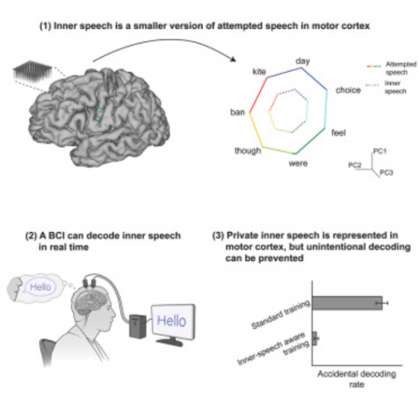 Как это работает? Электроды вживляют в зоны мозга, отвечающие за речь, и машинное обучение декодирует сигналы. Пациент думает: "Хочу пива", и текст появляется на экране. Это спасение для людей с БАС или инсультом, но есть подвох, их можно использовать и не только на больных людях. Прощай, ментальная свобода.Если кому интересно, то большая и жутко научная статья-первоисточник тут.