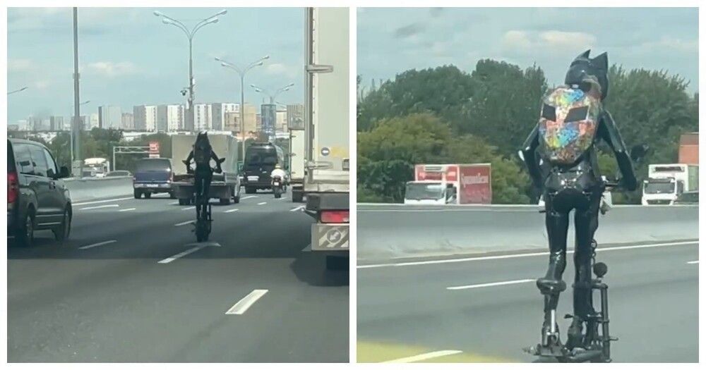 Сегодня днём водители заметили на 15-м километре МКАДа женщину на электросамокате. Барышня спокойно неслась по проезжей части в потоке машин, разгоняя свой двухколёсный чертолет до сотки.
