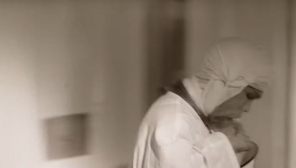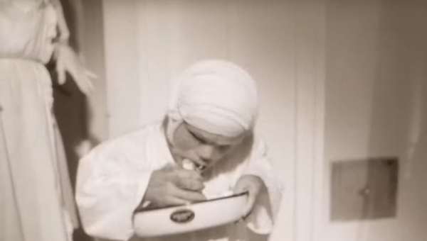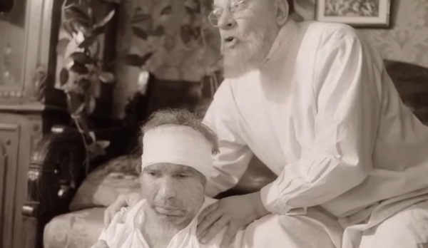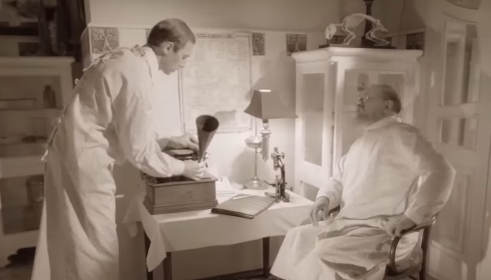 В известном фильме 1988 года "Собачье сердце" есть есть слегка жутковатый момент.Преображенский уже провел операцию, пёс начал "превращаться" в человека. Он издает странные звуки (Ы-А, Ы-А), буйно ведет в занавешенной кровати.