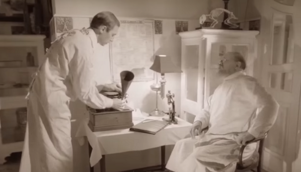 Профессор с Борменталем радуются, что их подопытный встал на ноги: