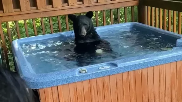 В Теннесси медвежонок решил устроить себе спа-день и залез в джакузи во дворе. Хозяева застали пушистого гостя за купанием.