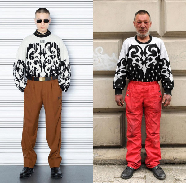 Украинский фотограф и создатель проекта Slavik's Fashion Юрко Дячишин заподозрил модный бренд VTMNTS в использовании стиля популярного в сети бездомного Славика для создания своей своей новой коллекции. Об этом он написал в своем Instagram.