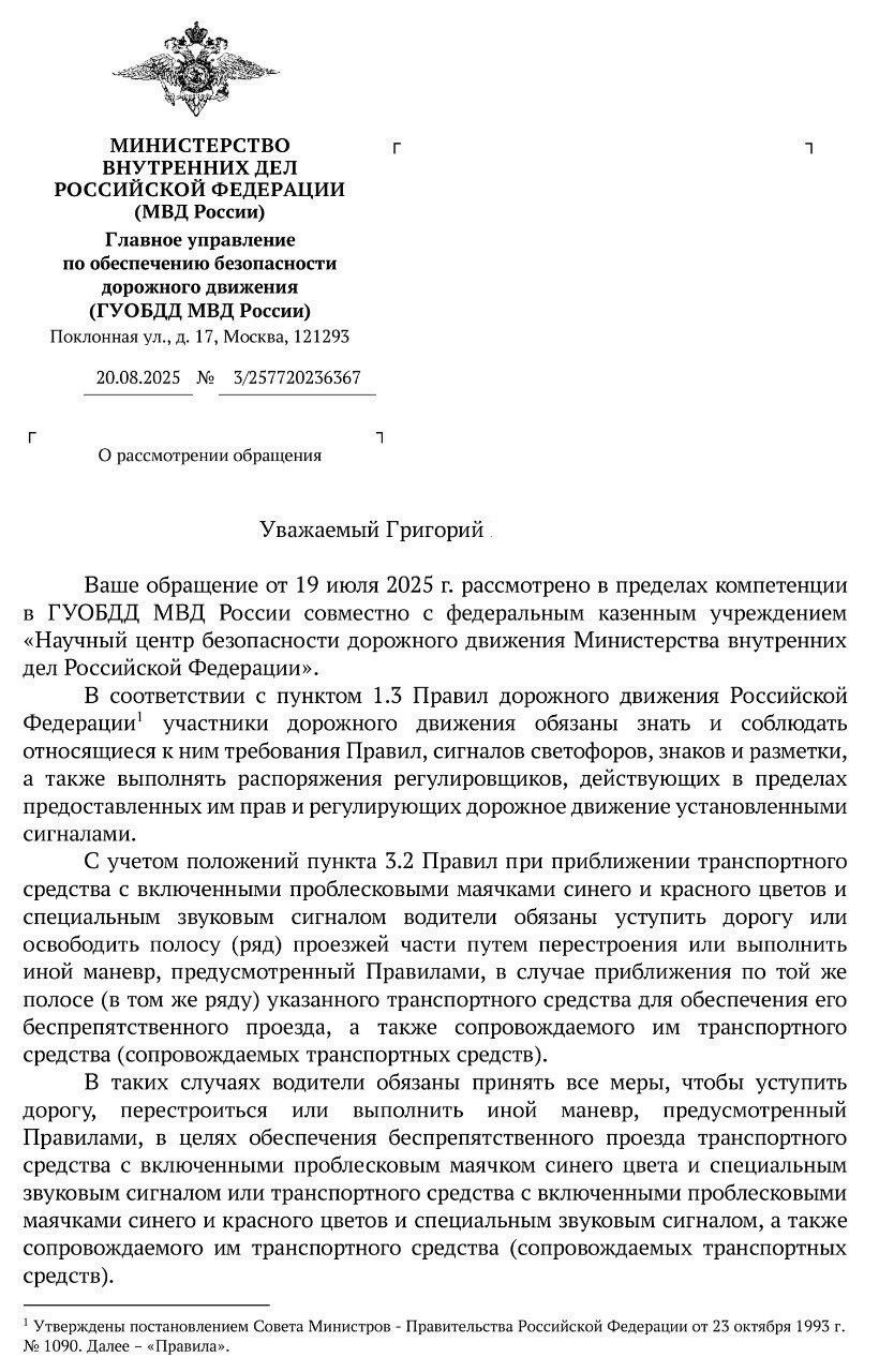 В Госавтоинспекции объяснили, как правильно пропускать транспорт со спецсигналами